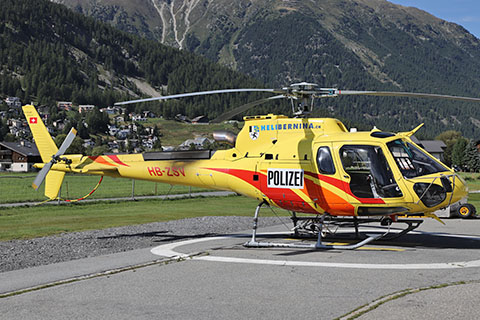 | HB-ZYI of Airport Helicopter AHB AG at Lauterbrunnen - Photo by Michael Mau © May-25 | OE-XHZ operated by Air Zermatt AG at Raron - Photo by Peter Steinlechner © 11-Sep-15 |