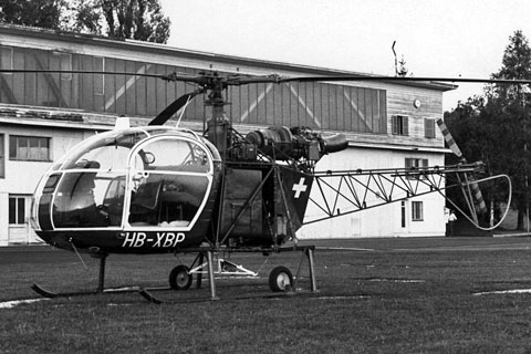 | HB-XBP of Air Grischa at Bern-Belp - Photo by Paul Schuepbach © 1978 | HB-XBP of Säntis-Heli AG at Fricktal-Schupfart - Photo collection Werner Häuselmann © 1-Sep-79 |