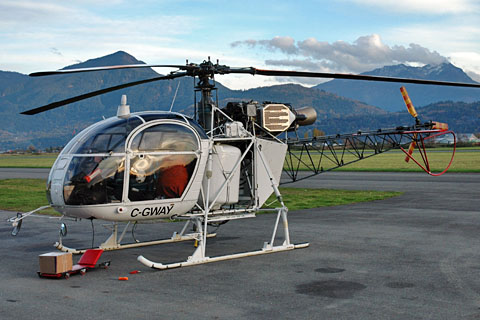 | Former HB-XBP as SA315B C-GWAY at Chilliwack - Photo by Peter Zurniwen © 26-Oct-05 |