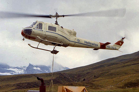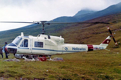 | HB-XCG of Heliswiss at Alp Ruschein in the first colors - Photo by Roland Küng © Jun-73 | HB-XCG of Heliswiss at Alp Ruschein in the first colors - Photo by Roland Küng © Jun-73 |