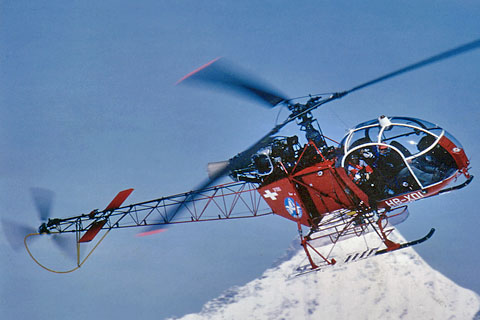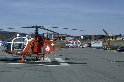 | The 1st swiss Lama HB-XDI of Air Zermatt at Aeschi - Photo Archiv Hans Zurniwen © Mar-81 | HB-XDI of Air Zermatt hovering at Rothornhütte - Photo Archiv Hans Zurniwen © Aug-84 |