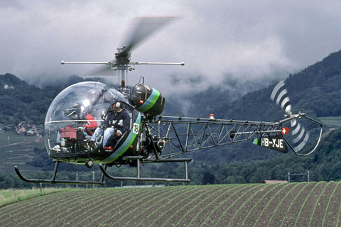 | HB-XJE of Groupe Helico du Chablais at Chateaux d'Oex - Photo by Markus Herzig © 1-Mar-99 | HB-XJE of Groupe Helico at Bex during the Helicup - Photo by Markus Herzig © 27-May-00 |