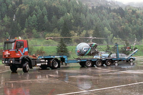 | HB-XJE at Ambri on the way home by truck due to bad weather - Photo by Mario Bazzani © 6-May-00 | HB-XJE of Juliett Echo GmbH at Zurich airport - Photo by Marcel Kaufmann © 20-May-04 |