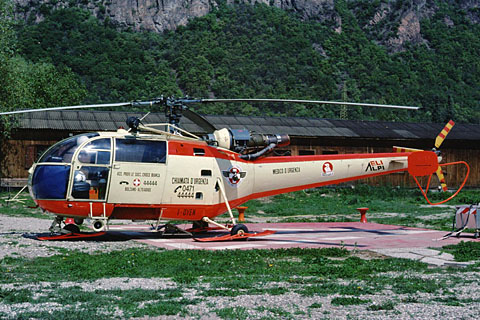 | In earlier time as I-OYEN of Eli Alpi at Bolzano Hospital - Photo by Damiano Gualdoni © 22-Apr-90 | HB-XJK of Heli-TV at Lodrino during the first presentation - Photo by Markus Herzig © 23-Mar-96 |