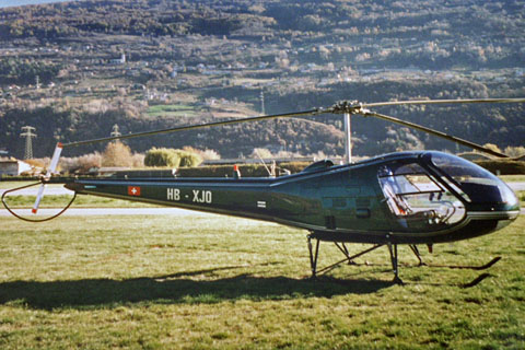 | HB-XJO of William Fux taking off at Gampel heliport - Photo by Hans Zurniwen © 7-Sep-96 | HB-XJO of William Fux at Sion airport - Photo by Joel Fuchs © 1997 |