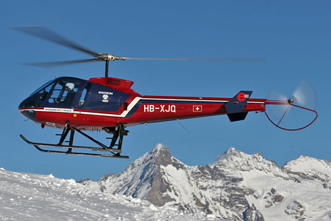 | HB-XJQ of Flugschule Eichenberger AGat Zurich airport - Photo by Marcel Kaufmann © 17-Oct-04 | HB-XJQ approaching Lauberhorn helipads - Photo by Markus Herzig © 14-Jan-06 - MHP |