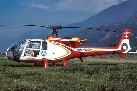 | HB-XMU of Air Zermatt AG at Aosta - Photo by Damiano Gualdoni © Jul-86 |