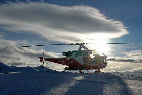 | HB-XOF of Air Glaciers in front of Barrage d'Emosson - Photo by Nicolas Fauchere © 20-May-05 | HB-XOF of Air Glaciers at Petit Mont-Bonvin on rescue stand by - Photo by Axel de Preux © 26-Mar-06 |