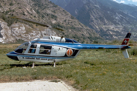| HB-XPR of Rüdisühli Helitransport at Gampel heliport - Photo by Egon In-Albon © 1980's |