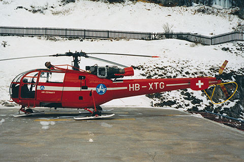 | HB-XTG of Air Zermatt AG at Zermatt heliport - Photo by Hans Zurniwen © Feb-89 |