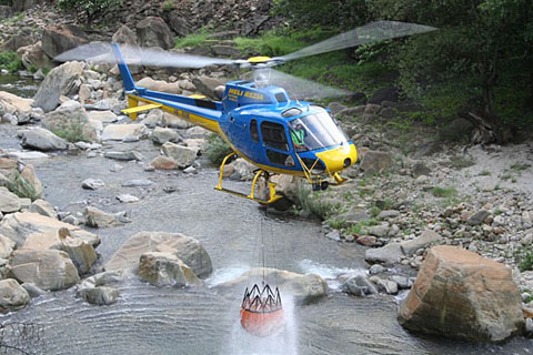 | HB-XVM of Heli Rezia at work - Photos by Giorgio Tomamichel © 11-Feb-06 & Bertrand Cina © 3-Apr-06 | HB-XVM of Heli Rezia during fire fighting at Giornico - Photo by Nicolas Romerio © 31-May-06 |