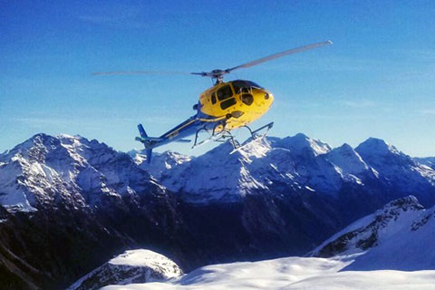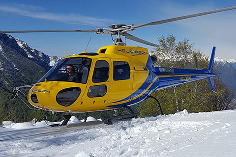| HB-XVM of Heli Rezia in the San Bernardino ski region - Photo by Renato Belloli © Dec-16 | HB-XVM of Heli Rezia at Monti Pianodolce on May snow - Photo by Luca Agosti © 2-May-17 |