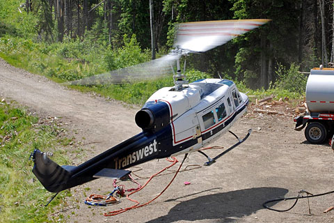 | Former HB-XVZ as C-GTWV ofTranswest Helicopters at Hixon - Photo by Peter Zurniwen © 22-Jun-07 |