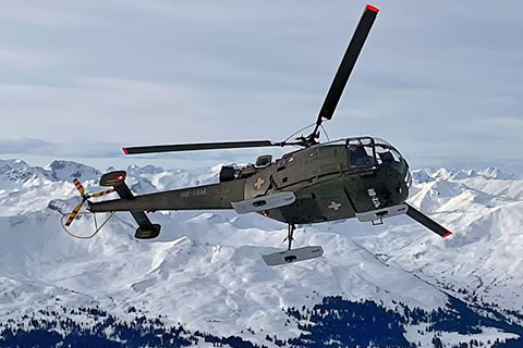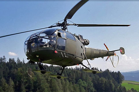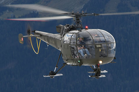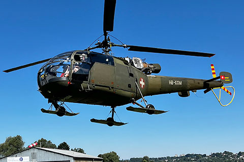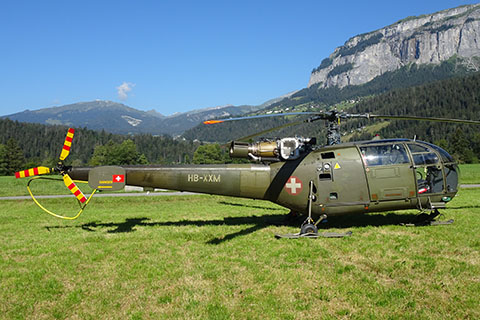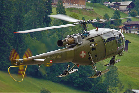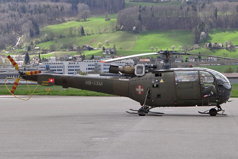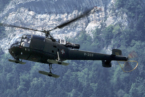 | V-208 of Swiss Air Force during approach to Buochs - Photo by Markus Herzig © 2-Aug-99 | HB-XXM of Alouette Suisse AG at Bern-Belp - Photo by Pascal © 20-Apr-12 |