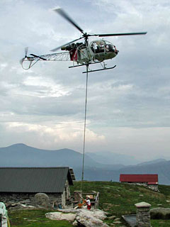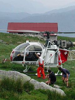 | HB-XXS of Eliticino SA working at Alpe Mognone - Photo by Mario Bazzani © 30-May-03 | HB-XXS of Eliticino SA taking off at Alpe Mognone - Photo by Mario Bazzani © 30-May-03 |