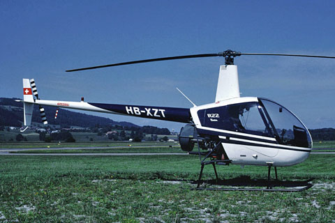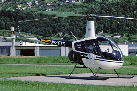 | HB-XZT of Tarmac Aviation SA / Ulrich Grässli at Bern-Belp - Photo by Markus Herzig © 20-Aug-94 | HB-XZT in front of a Robinson R22 lineup at Pfaffnau heliport - Photo by Ben-Air © 2000 |