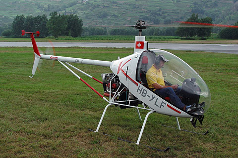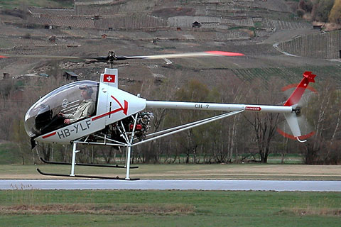 | HB-YLF of Heli Club Oberwallis returning to Raron airfield - Photo by Julien Ritz © 3-Apr-04 | HB-YLF just before takeoff from Raron - Photo by Chris Haag © 24-Jul-04 |