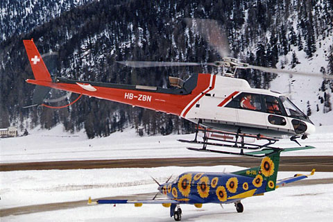 | HB-ZBN of Heli Bernina AG / ALAG at Samedan - Photo by Markus Herzig © 28-Jan-01 | HB-ZBN of Heli Bernina AG / ALAG at Davos for the WEF - Photo by Werner Häuselmann © 28-Jan-01 |