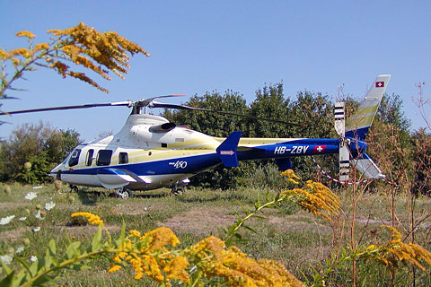 | HB-ZBV of FFA Elegance Air after a rainshower at Bern - Photo by Markus Herzig © 6-Jun-01 - ANET | HB-ZBV of TASair Aviation SA at Davos Stilli heliport - Photo by Werner Haeuselmann © 25-Jan-03 |