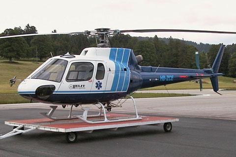| HB-ZCE of Helit Hélicoptères at Geneva in new colors - Photoby Jean-Luc Altherr © 12-Feb-02 | HB-ZCE of Helit Hélicoptères at Les Eplatures in full new colors - Photo by Helit Hélicoptères © Mar-02 |
