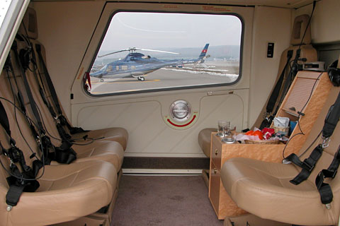 | HB-ZDF at WEF ground handling with an old Davos-Sledge - Photo by Gerard Fabich © 26-Jan-05 | The cabin of HB-ZDF with HB-ZBZ thru the windows at Zurich - Photo by Marcel Kaufmann © 25-Jan-06 |