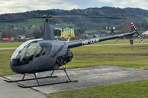 | HB-ZEM of Chablais Heli Club at Wallegg - Photo by Fabian Reymond © 24-Jan-18 | HB-ZEM of Helialpin AG in front of thier Robinson lineup at Altenrhein - Photo by Helialpin © 1-Mar-20 |