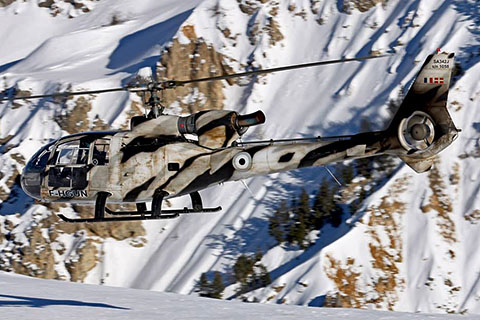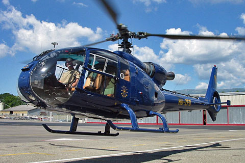 | The 2nd swiss SA342J at take off rom Geneva - Photo by Laurent Vernet © 18-Jun-04 | Previous HB-ZFD as F-HGUN at Courchevel - Photo by Romain Baheu © 25-Jan-14 |