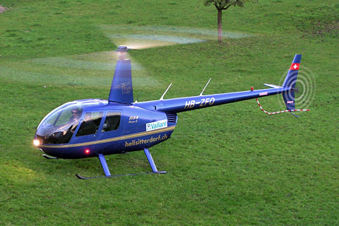 | HB-ZFQ of Heli Sitterdorf at Rothorn with Dom and Täschhorn - Photo by Raoul Perren © 4-Jan-06 | HB-ZFQ of Heli Sitterdorf AG ready for takeoff at Gossau - Photo by Paul Ulrich © 26-Oct-07 |