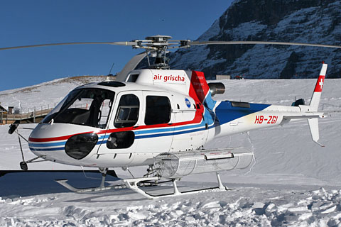 | HB-ZGI of Air Grischa Helikopter at ZRH not yet with titles - Photo by Marcel Kaufamnn © 23-Dec-04 | HB-ZGI of Air Grischa Helikopter AG at Kleine Scheidegg - Photo by Markus Herzig © 14-Jan-06 |
