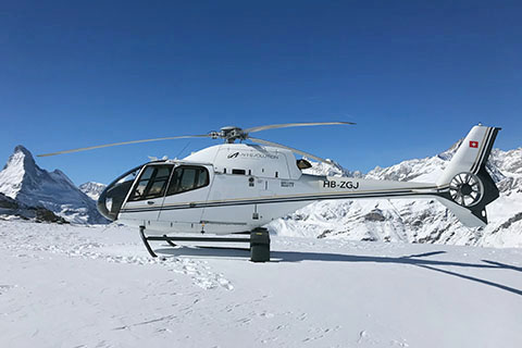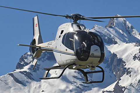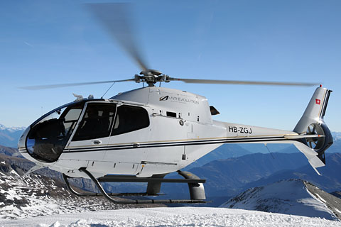 | HB-ZGJ of Air Evolution Ltd at Unterrothorn - Photo by Hans Zurniwen © 5-Mar-19 | HB-ZGJ of Heli-TV SA / Air-Evolution Ltd at Hüfigletscher - Photo by Stefan Bucheli © 5-Nov-20 |