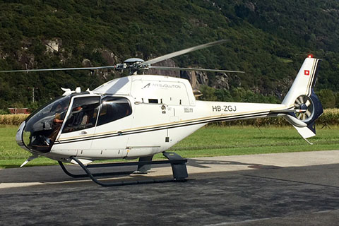 | HB-ZGJ of Heli-TV SA / Ticinavia AG flying heading sunset - Photo by Air Evolution © 18-Nov-11 | HB-ZGJ of Air Evolution at Gebirgslandeplatz Arosa- Photo by Martino Albertalli © 1-Dec-13 |