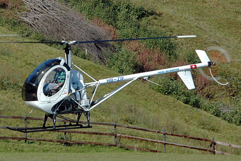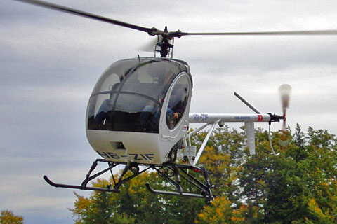 | HB-ZIF of Fuchs Helikopter hovering at Schindellegi - Photo by Kurt Albisser © 29-Sep-07 | HB-ZIF of Fuchs Helikopter at the homebase Schindellegi - Photo by Bruno Siegfried © 1-Oct-07 |