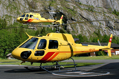 | HB-ZIS of Heli Bernina is taking off from Samedan - Photo by Thomas Schmid © 21-Dec-08 | HB-ZIS of Air Glaciers at Lauterbrunnen with sistership HB-ZHY - Photo by Bruno Siegfried © 4-Jun-13 |
