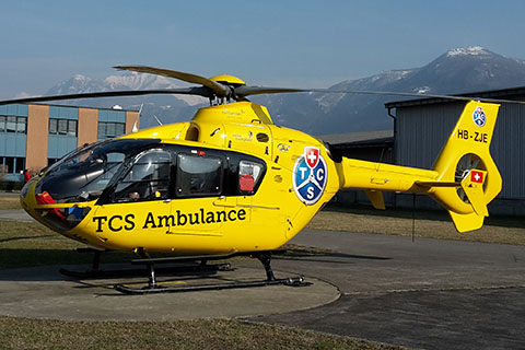 | HB-ZJE of Skymedia AG in TCS Ambulance colors at Sierre - Photo by Reynold Favre © 16-Mar-13 | HB-ZJE of Skymedia AG / TCS Ambulance at Locarno - Photo by Damiano Talleri © 9-Mar-15 |