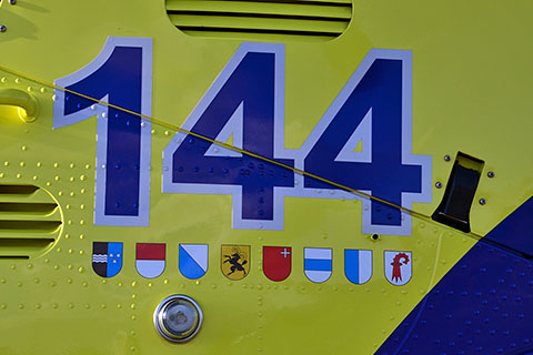 | HB-ZJE of Skymedia AG with the emergency number 144 - Photo by Max Monnier © 5-Feb16 | HB-ZJE of Skymedia AG taking off at Birrfeld - Photo by Matthias Hansen © 25-May-16 |
