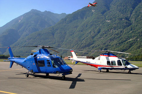 | HB-ZLI in front of the Karen SA hangar at Lodrino - Photo by Janos Pestoni © Aug-10 | HB-ZLI and A109A HB-ZHG - 30 years difference - Photo by Janos Pestoni © 3-Sep-10 |
