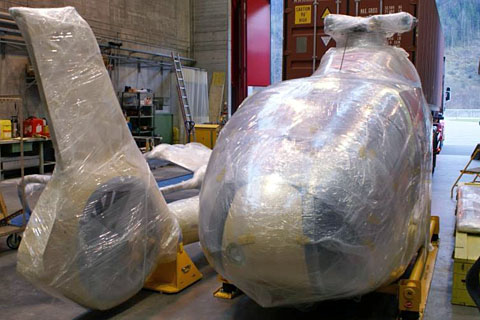 | N120RZ sn1571 just arrived at Alpnach - Photo by Helipool GmbH © Feb-09 | N120RZ sn1571 in the RUAG hangar at Alpnach - Photo by Helipool GmbH © 25-Feb-09 |