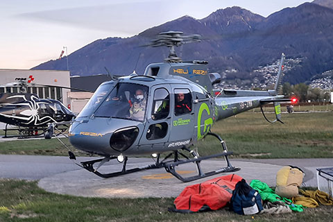 | HB-ZMK of Heli Rezia AG during a visit at Pianezza - Photo by Gianco Scolari © 8-May-20 | HB-ZMK of Heli Rezia AG during work at Frasco - Photo by Oliver Colombi © 25-Jun-20 |