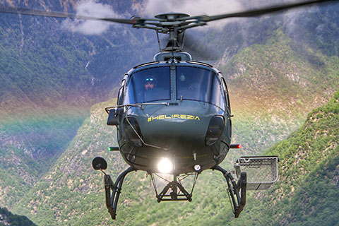 | HB-ZMK of Heli Rezia AG at San Vittore in front of a rainbow - Photo by Michele Ceresa © 13-May-23 | HB-ZMK of Heli Rezia AG at San Vittore - Photo by Oscar Bernardi © 13-May-23 |