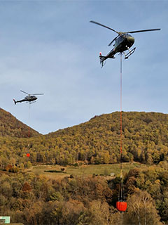 | HB-ZMK and HB-ZPD of Heli Rezia AG during a fire mission at Isone - Photo by Luca Agosti © 13-Nov-23 | HB-ZMK and HB-XVM of Heli Rezia AG at Ambri airport - Photo by Luca Agosti © 20-Jan-24 |