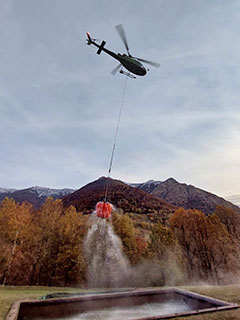 | HB-ZMK of Heli Rezia AG during a transport job at Locarno - Photo by Oliver Colombi © 10-Dec-20 | HB-ZMK of Heli Rezia AG early morning at Locarno for fire fighting - Photo by Luca Agosti © 8-Apr-21 |
