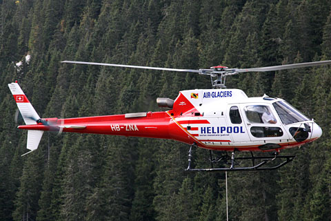 | HB-ZNA during construction work with Air Glaciers - Photo by Bruno Siegfried © 24-Jul-09 | HB-ZNA on Helipool Swiss Mountain Patrol - Photo by Helipool Europe GmbH © Aug-09 |