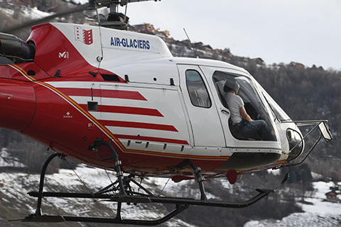 | HB-ZNA of Air-Glaciers SA working at Gampel - Photo by Luca Ritz © 29-Apr-23 | HB-ZNA of Air-Glaciers SA at Unterrothorn - Photo by Hans Zurniwen © 30-Dec-23 |