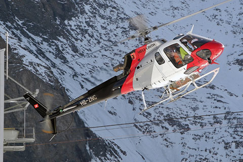 | HB-ZNC of Heli-Linth AG in the Muttsee region - Photo by Daniel Pfeiffer © 9-Dec-16 | HB-ZNC of Heli-Linth AG at Jungfraujoch - Photo by Armin Ackermann © 8-Apr-17 |