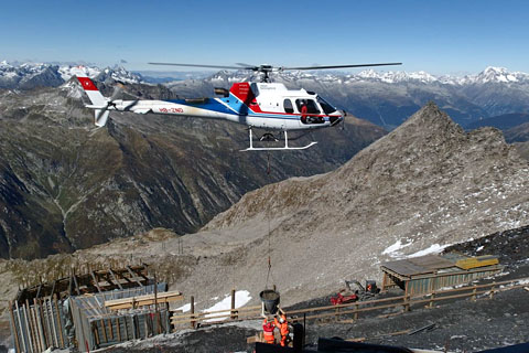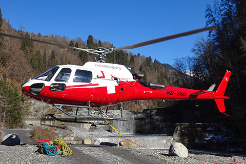 | HB-ZND of Swiss Helicopter AG during a transport job at Elm - Photo by Thomas Bäbler © 6-Oct-14 | HB-ZND and HB-ZIB of Swiss Helicopter AG at Tavanasa - Photo by Marco Schmid © 11-Apr-18 |