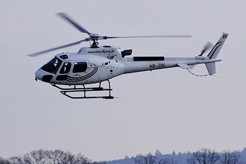 | HB-ZNL of Mountain Flyers at Heliweekend Grenchen - Photo by Constantin Chryssanthis © 1-Jun19 | HB-ZNL of Mountain Flyers 80 Ltd approaching Grenchen - Photo by Thomas Bäbler © 8-Jan-21 |