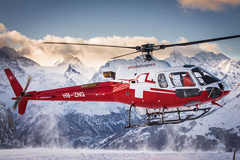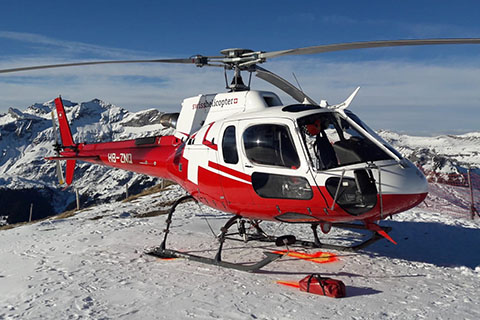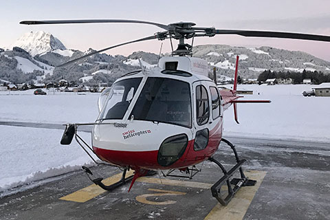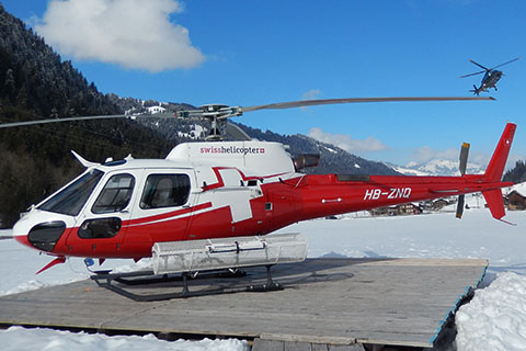 | HB-ZNQ of Swiss Helicopter AG at Männlichen - Photo by Patrick Aegerter © 16-Jan-16 | HB-ZNQ of Swiss Helicopter AG at Gstaad-Grund - Photo by Ernst Bach © 10-Feb-17 |
