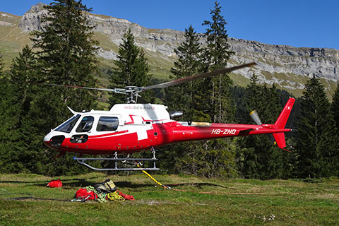 | HB-ZNQ of Swiss Helicopter AG at Gruyères - Photo by Stéphane Thomann © 13-Dec-17 | HB-ZNQ of Swiss Helicopter AG at Männlichen - Photo by Gerard Fabich © 17-Jan-20 |