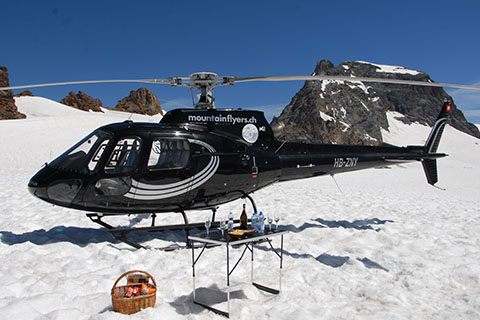 | HB-ZNY of Mountain Flyers 80 Ltd at Petersgrat ready for the apero - Photo by Armin Hässig © 19-Jul-20 |
