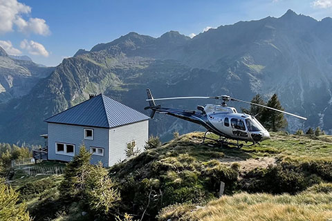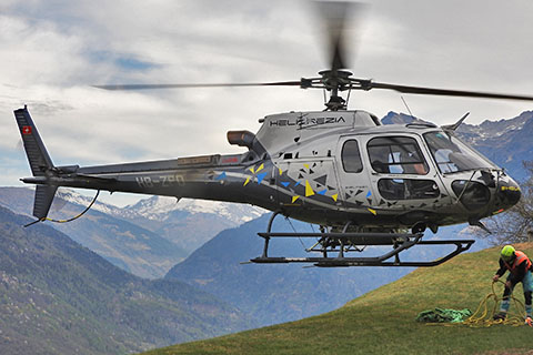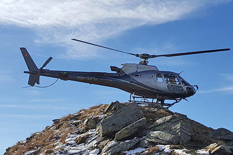 | HB-ZPD of Heli Rezia AG in Valle Verzasca - Photo by Oliver Colombi © 30-Jul-20 | HB-ZPD of Heli Rezia AG on top of a mountain in Valle Calanca - Photo by Luca Agosti © Feb-21 |